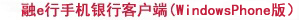 融e行手机银行客户端(WindowsPhone版)是指通过WindowsPhone客户端软件为您提供的手机银行服务,您登录客户端即可享受……详细>>